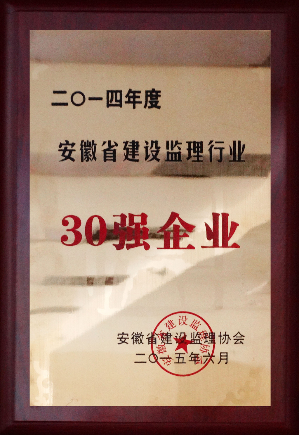 6月11日,安徽省建設監理協會公布了“安徽省建設監理行業30強”企業名單,我公司位居第18位。該名單以2014年度安徽省實際監理收入總額排序為依據。