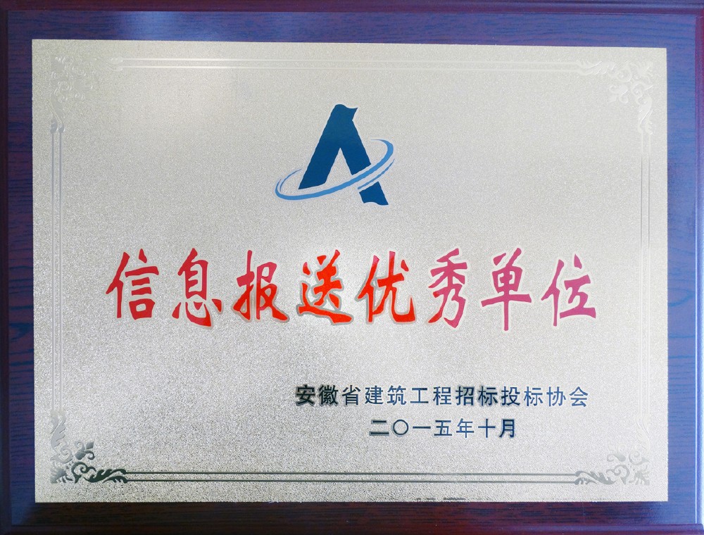10月15日下午,安徽省建筑工程招標(biāo)投標(biāo)協(xié)會(huì)主辦的四屆二次常務(wù)理事會(huì)在肥召開(kāi),安徽遠(yuǎn)信工程項(xiàng)目管理有限公司被授予2015年度全省“信息報(bào)送優(yōu)秀單位”榮譽(yù)稱(chēng)號(hào)。