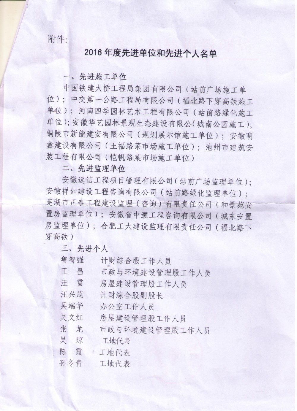 2月29日,無為縣重點工程建設(shè)管理局發(fā)布《關(guān)于表彰2015年度先進(jìn)單位和先進(jìn)個人的通報》,授予我公司“先進(jìn)監(jiān)理單位”稱號。