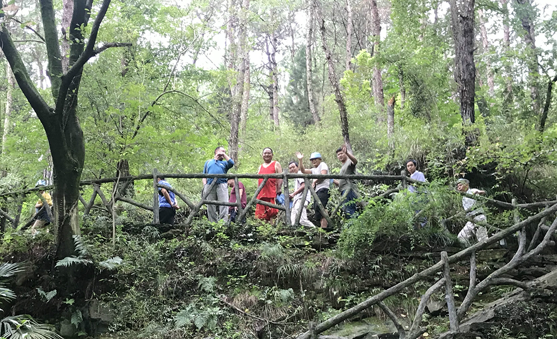 根據活動行程安排,大家首先到達位于天柱山腳下的石牛古洞景點參觀。據介紹,黃庭堅曾在此筑室讀書,景點內巖壁現存歷代文人墨客的詩文石刻三百余處。大家徘徊于青山綠水間,聽幽泉潺潺,觀巖壁石刻,親身感受了宜人的生態氧吧生活。