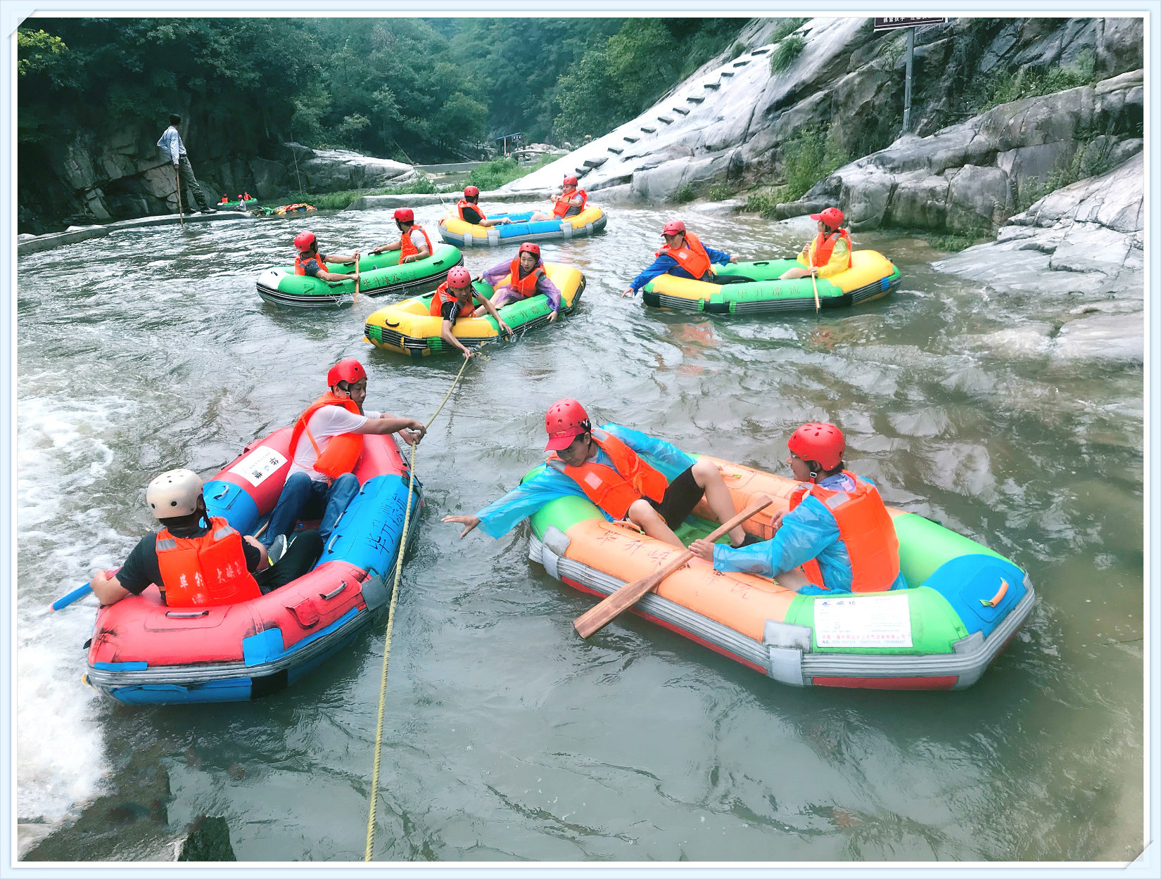 孔子云:“仁者樂山,智者樂水”。不過,你如果問一般人是樂山還是樂水,所得的回答多半是山水都樂。所以,游覽完天柱山,第二天的行程就是體驗驚險刺激的畢升大峽谷漂流。畢升大峽谷位于湖北黃岡,漂流景區兩岸懸崖峭壁陡立,山巒跌宕,水道漫長險峻,其總落差達288米。大家在天光云影間、在旖旎風光里,戲水打鬧、好不愜意。