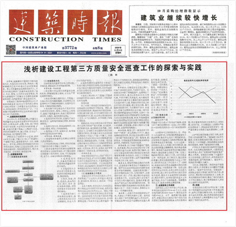 近日,由我司總結撰寫的《淺析建設工程第三方質量安全巡查工作的探索與實踐》通稿,作為監理巡查成功案例分析在《建筑時報》11月5日第七版全文刊登。
