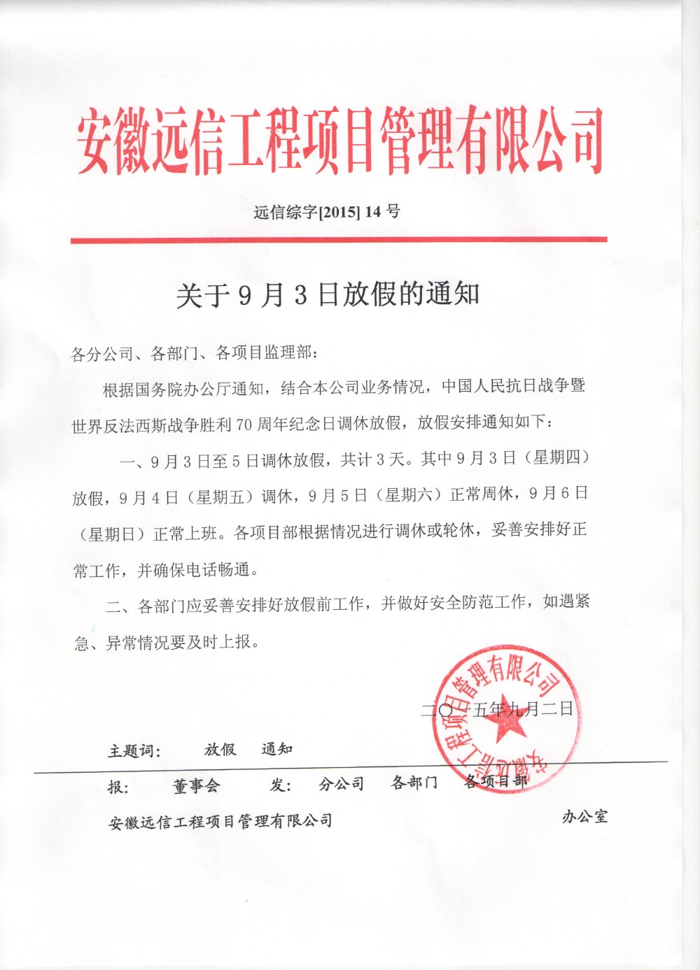 關于9月3號放假的通知